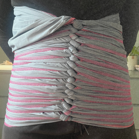 Bengkung Belly Binding ist eine traditionelle malaiische Methode des Bauchbindens im Wochenbett. Dabei wird ein langer, handgewebter Stoffstreifen kunstvoll und fest, gleichzeitig behutsam und sanft um den Bauch, die Hüften und den unteren Rücken gewickelt. Ziel ist es, den Körper nach der Geburt zu stabilisieren, die Rückbildung der Bauchmuskulatur zu unterstützen, das Becken zu halten und ein Gefühl von Zentrierung und Geborgenheit zu schenken.
